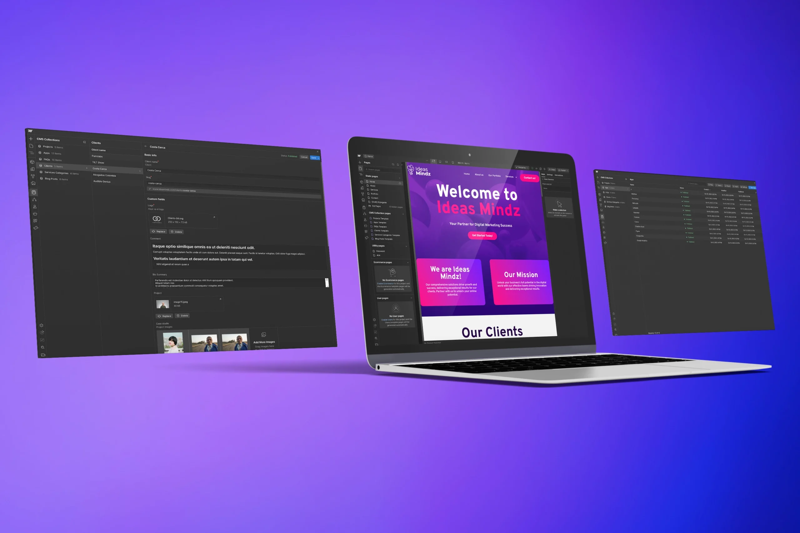 Ideas Mindz necesitaba una presencia digital que reflejara su enfoque en innovación, pensamiento estratégico y transformación empresarial. El objetivo fue crear una experiencia clara, moderna y fácil de escalar.